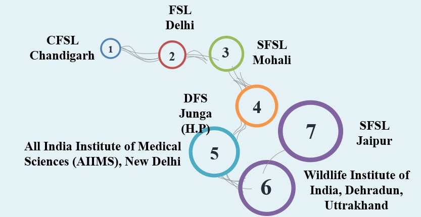 M.Sc. students are attached to various central/state Forensic Science Labs (CFSLs/FSLs) and Institutes for at-least for15 days in their respective specialized areas to be exposed to real time crime case evidences.